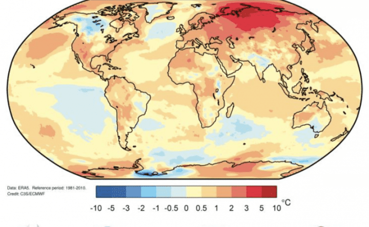 Enligt rapporten var årets mest spektakulära värme har funnits i arktiska Sibirien där temperaturen var mer än 5 grader över genomsnittet. Hettan kulminerade i slutet på juni då det var 38 grader i Verkhoyansk. Det är sannolikt den högsta temperaturen som har uppmätts norr om polcirkeln.